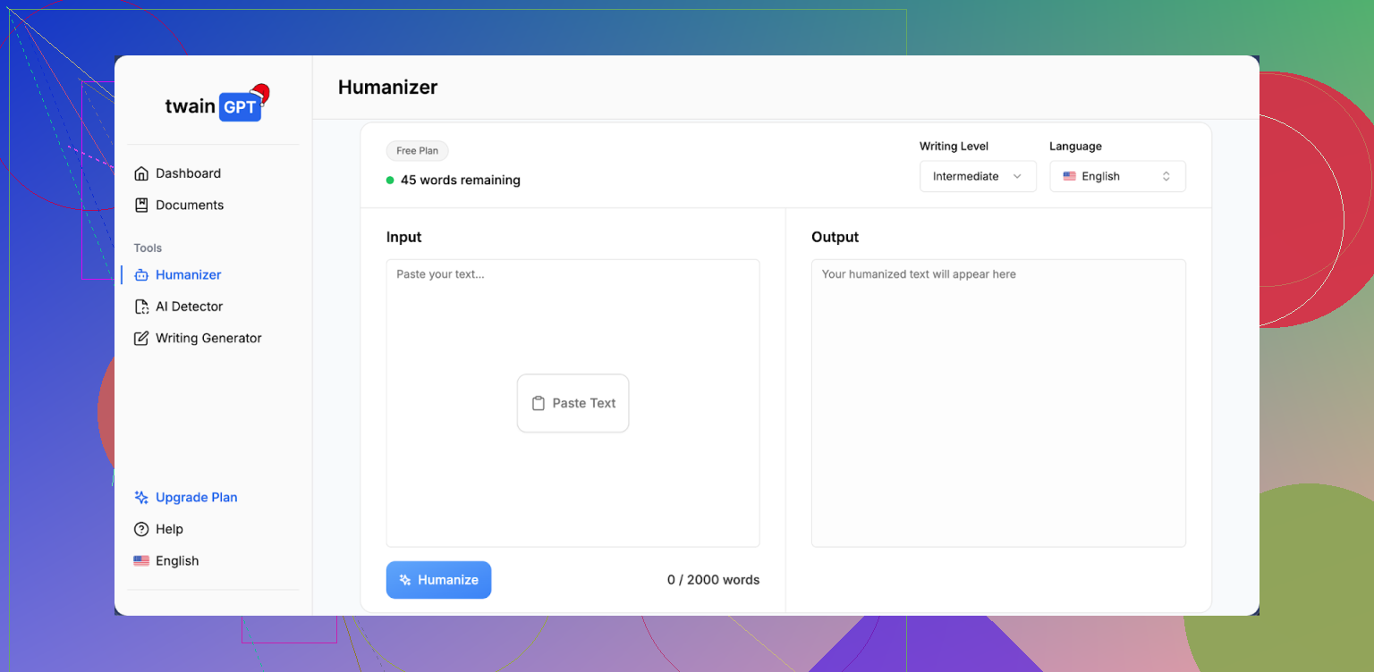 After I finished with TwainGPT, I ran the same samples through Clever AI Humanizer and checked both writing quality and detector results.