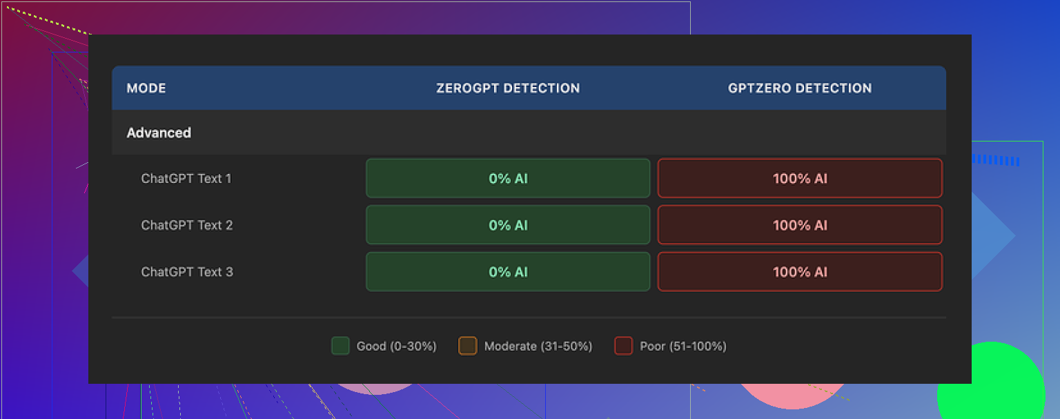 If your situation is high stakes, do your own tests with the exact detector you expect to face. Do not trust marketing pages or single-detector screenshots.