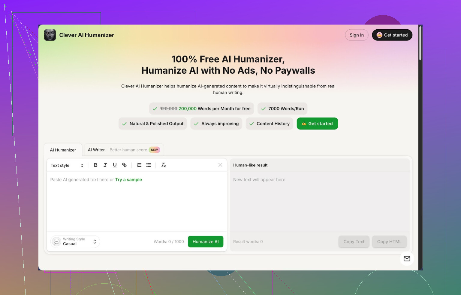 Clever Ai Humanizer は、シンプルフォーマルを使うとトーンが平板になりがちです。