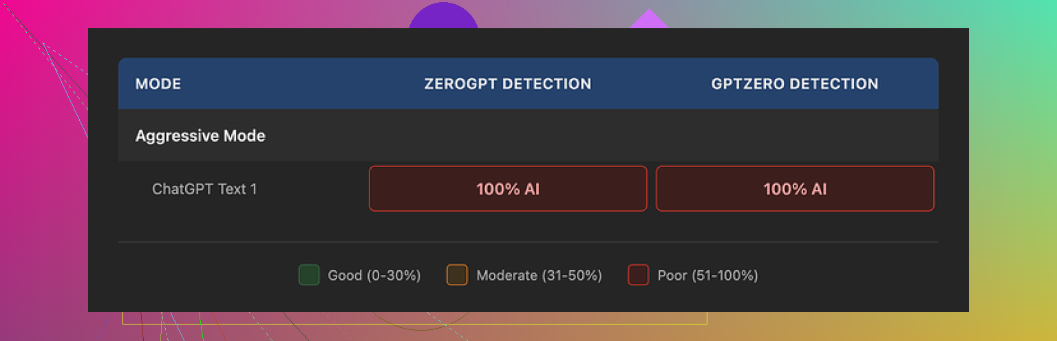 - Not a guaranteed bypass for all detectors, especially on highly formal tasks like research summaries.