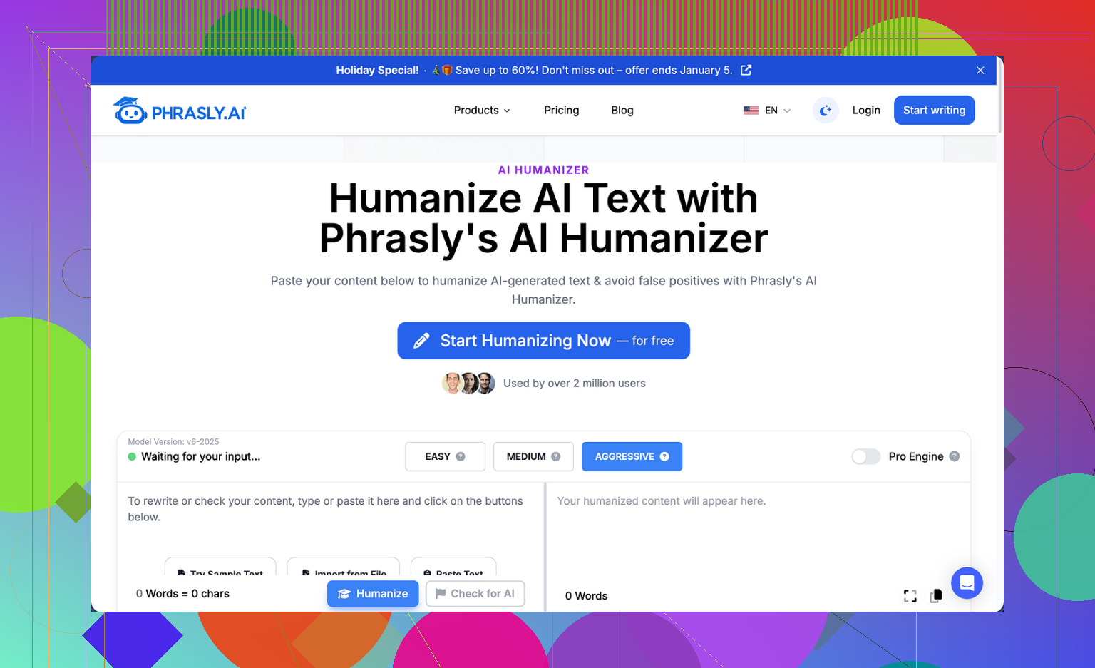 - When combined with your own edits (personal anecdotes, informal phrasing), it usually moves detector scores more meaningfully than Phrasly alone.