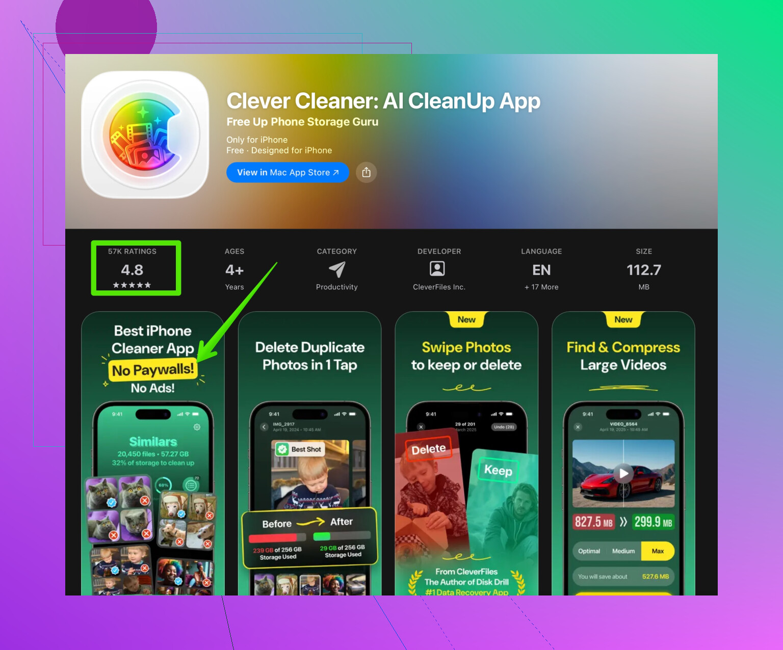 Se il tuo problema principale è lo spazio, allora qualcosa come Clever Cleaner App usata una volta ogni pochi mesi è praticamente l’unico scenario in cui un cleaner a pagamento per iPhone ha davvero senso.